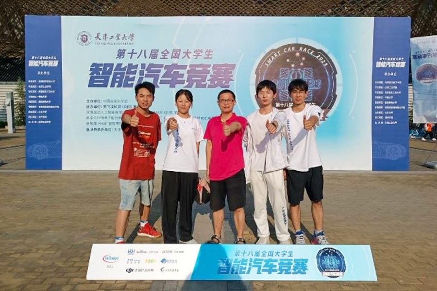 指导老师及学生在全国大学生智能汽车竞赛国赛留影
