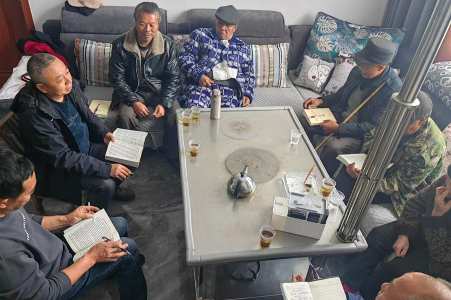 驻村工作队带领党员一起学习《习近平新时代中国特色社会主义思想专题摘编》