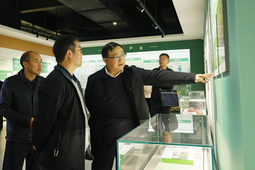 在学校展览中心,李小标一行详细了解学校的办学历史,深入考察学校在人才培养、科学研究、社会服务、文化传承等方面取得的成就,并通过大型智能沙盘沉浸式体验学校未来发展蓝图。