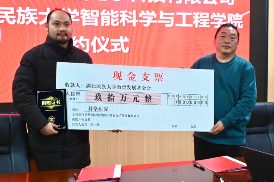 12月29日下午,湖北德青医疗精密电子科技有限公司向44118太阳成城集团智能科学与工程学院捐赠签约仪式在智能学院举行。德青医疗向我校教育发展基金会捐赠90万元,用于支持智能学院学科建设、人才培养及科研创新,进一步深化校企合作,推动产学研融合发展。