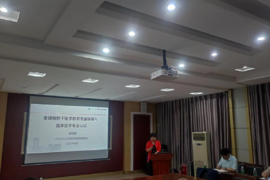 谢阿娜作了题为《全球视野下医学教育质量保障与临床医学专业认证》报告,她从全球及我国高等教育质量面临危机和挑战、高等教育质量保障体系建设的背景、高等医学教育质量保障的重要性、全球医学教育质量保障的主要手段等方面结合临床医学专业新一轮认证的要求进行了详细讲解。
