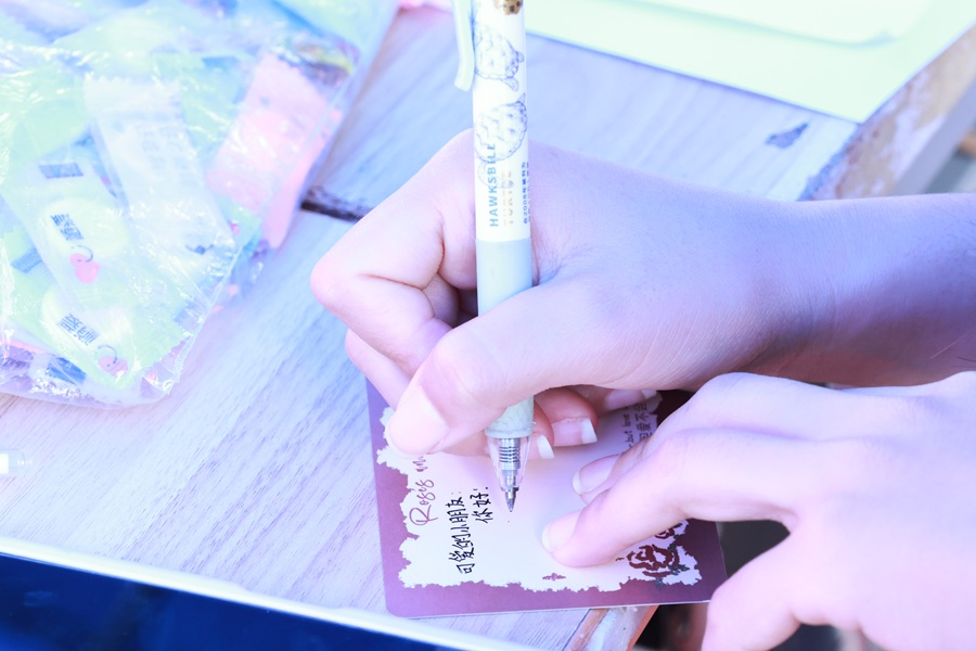 “情寄笔尖,寻你同行”活动区域内,模拟回信台前围聚着不少学生。学生认真书写,字句质朴真挚,既饱含对乡村儿童的美好祝愿,也传递出跨越山海的牵挂与关怀,用笔墨搭建起心与心的沟通桥梁。
