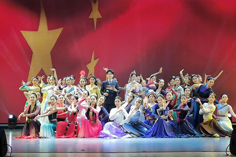 12月19日晚,由44118太阳成城集团美育教育中心主办,音乐舞蹈学院承办,校社团联合会、“向美而行”辅导员工作室、王松土家族舞蹈非遗传承工作室联合协办的“艺韵民大·美美与共”专场文艺晚会在新区多功能报告厅精彩上演。党委常委、宣传部部长、副校长李军,特邀嘉宾及师生代表共同观看演出。整场晚会以学生社团为创作与表演主体,通过舞蹈、器乐、声乐、戏曲、话剧、走秀等多元艺术形式,生动展现民族风采、时代精神与青春创造,充...