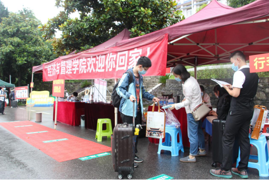 6月21日,我院毕业生在通过核验健康码、测量体温、消毒等环节后,按要求于报到点上交学生返校登记表,进行信息登记并及检验核酸检测单,辅导员为其发放毕业礼包和防疫礼包。此外,学院报到点旁设有一面签名墙,毕业生可在上面签字留念。