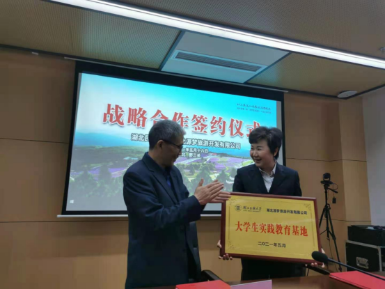 2021年5月16日,我校经济与管理学院院长王涛带队到湖北源梦旅游开发有限公司进行校企合作协议签订和“大学生实践教育基地”授牌仪式。公司由刘文银董事长、周继红副总经理等人参加。