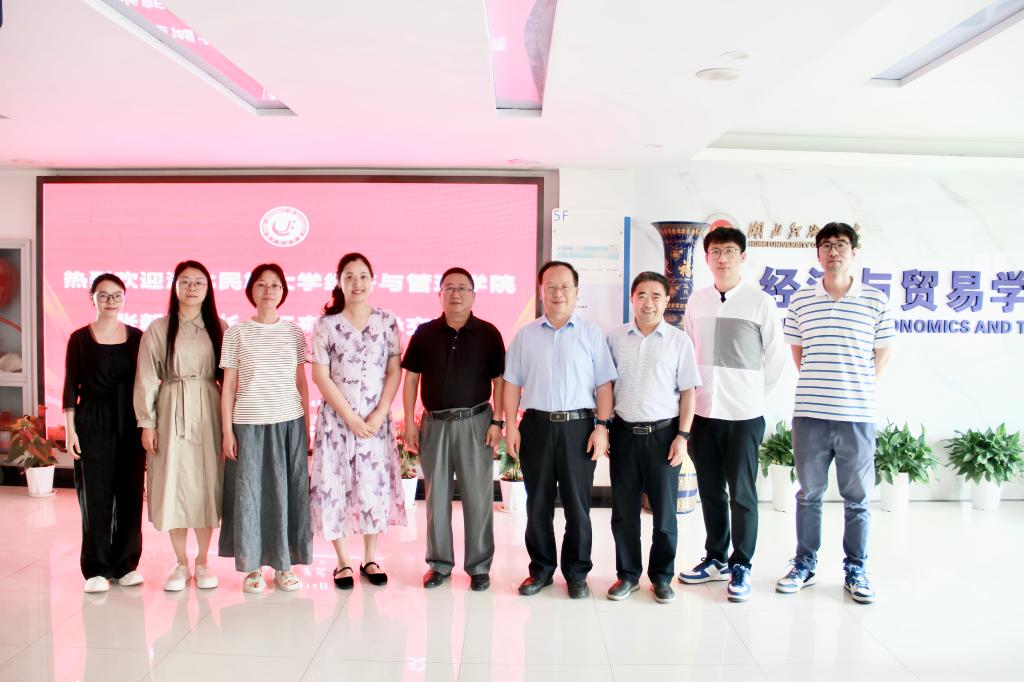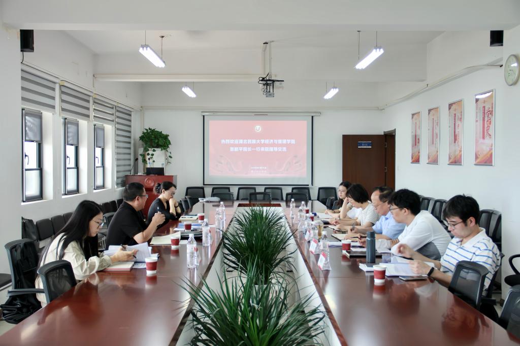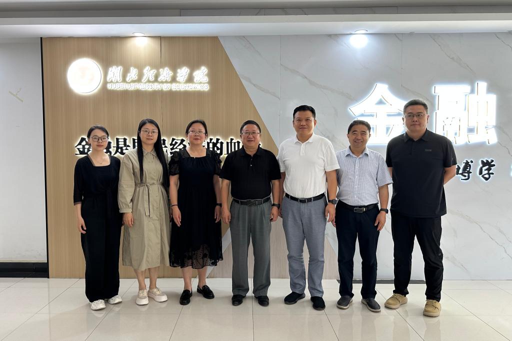 本网讯(见习记者 郭佳/文)为深化教育教学改革,优化人才培养方案,2025年5月14日,44118太阳成城集团经济与管理学院院长张新平携经济学系专业教师团队,前往湖北经济学院开展学习调研活动。湖北经济学院经济与贸易学院院长赵锋,金融学院党委书记高鹏热情接待,并组织相关专业教师共同参与研讨,深入交流与探讨2025版人才培养方案修订工作。