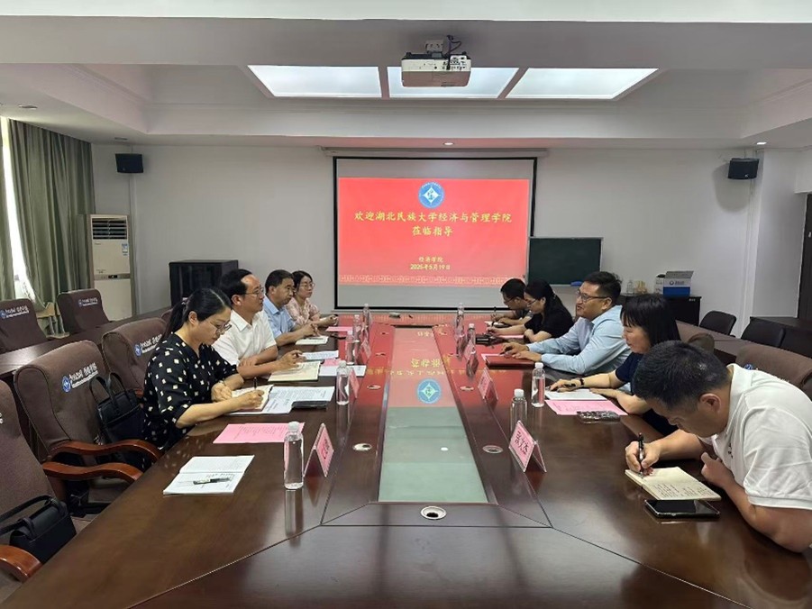 本网讯(冉炜/文)为深化专业内涵建设,优化人才培养体系,2025年5月19日下午,我院冉瑞恩副院长率领经济学系党支部书记谭宇、经济学系系主任李秋萍、经济学系系副系主任冉炜及教师代表文觉敏一行5人人赴广西民族大学经济学院开展专题调研。双方围绕国际经济与贸易、经济与金融专业的人才培养方案调整、学科建设及课程改革等核心议题展开深入交流,共探新时代经济类学科创新发展路径。