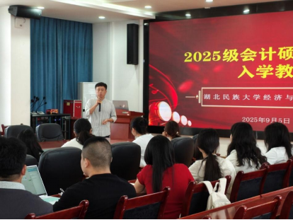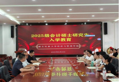 金秋送爽,启航新程。为引导2025级研究生新生尽快适应新环境、明确新目标、规划新生活,学院于2025年9月5日上午在附303会议室举行新生入学教育系列讲座。经济与管理学院副院长谭志喜教授、学科建设科科长方兴老师、MPAcc中心主任游宇老师、研究生辅导员吴严老师出席现场并分别开展讲座。