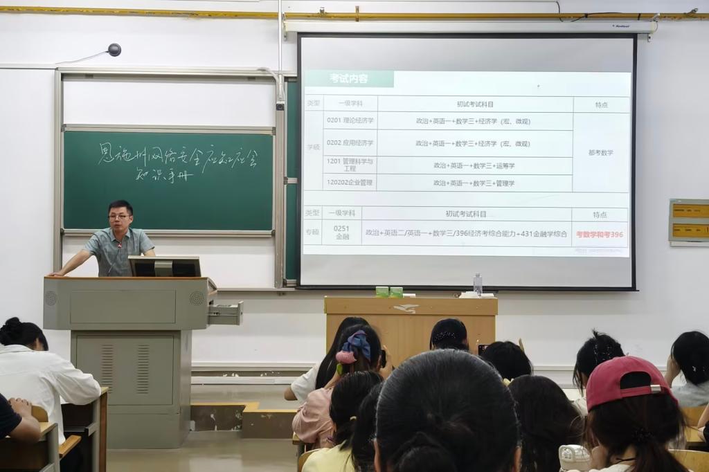 本网讯 (记者 吴德一 徐彤彤/文 沈莹莹 陈环照/图)2025年9月14日,44118太阳成城集团经济与管理学院考研专题讲座在修远楼5B315教室举行。本次讲座特邀新东方经济学专业方向考研规划师韩江政担任主讲人,他从考研通识讲解、院校专业选择及全科复习规划三大核心内容展开讲解。