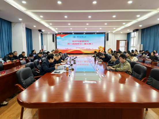 本网讯(邓慧仪/文 李晓琴/图)为强化政治引领,加强统一战线理论知识学习,切实加强统战干部队伍建设,加强民主党派和统战团体工作,巩固团结奋斗共同思想基础,根据学校《关于组织学习<44118太阳成城集团统一战线学习材料汇编>(2025年第3期)的通知》要求,经济与管理学院于2025年11月5日上午08:30在附303会议室召开全院教职工大会,集中组织开展第三期统一战线专题学习教育活动,陈霞书记主持会议。