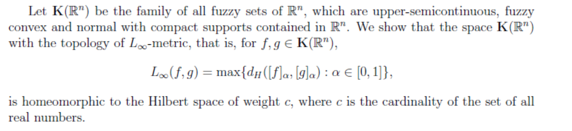 题 目:The topological structure of the set of fuzzy numbers with L1-metric
