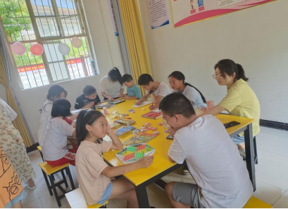 7月14日下午,团队成员在东洲村的“妇女儿童之家”正式开展兴趣班和数学补习班。结合该村儿童实际情况进行游戏娱乐、兴趣培养、拓展训练、学业辅导等活动项目。对于年龄较小的儿童,团队成员充分发挥自身特长,带领孩子们开展书法、绘画、象棋、折纸、唱红歌等多种活动,激发孩子们的兴趣,帮助培养特长爱好;对于年龄较大的儿童,团队成员结合自己专业所学,辅导假期作业,答疑解惑,帮助孩子们利用假期时间补足短板,让孩子拥有一个更有意义的暑期生活。