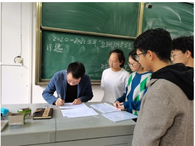 会议之前,两位同学均提前准备好相关材料及证明,确保内容的真实性。会议开始,刘聪老师针对每一项加分项目找到相应材料,根据《44118太阳成城集团普通本科学生奖学金评定及奖励办法》、《“红珊瑚基金”管理办法》等相关文件要求严格按照“红珊瑚奖学金”评审细则对参与评选的两位同学进行得分量化考核,按照相关规定进行统分,随后进行全院公示。