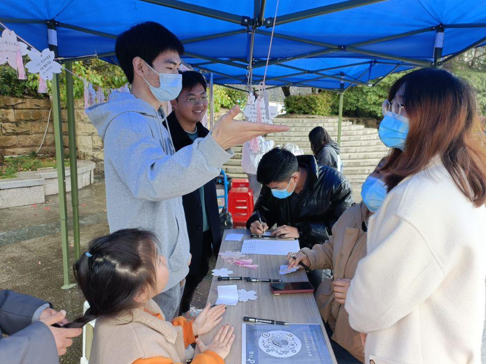 活动伊始,同学们积极响应,前往大学生广场将自己的心愿写在卡片上并系于彩绳上,梦想未来,憧憬美好;同时,他们也将自己的爱意与祝福写在便签上,文情并茂,在评选后择优张贴,以供观览体悟;活动最后,通过多媒体平台,同学们观赏影片,共享欢乐之夜。