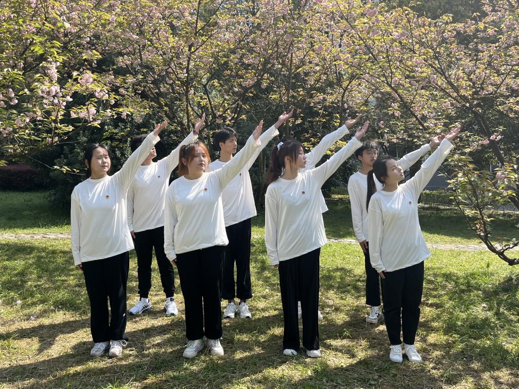 本网讯(见习记者 唐金凤 尚者 杨雪芬/文 唐金凤 娄璐/摄)为庆祝中国共产主义青年团建团100周年,4月3日上午,我院在数学与统计学院门口和我校樱花园举行“团歌嘹亮,红心向党”合唱活动。本次活动由我院团总支主办,团总支书记刘聪老师现场指导,共计29名学生参加。