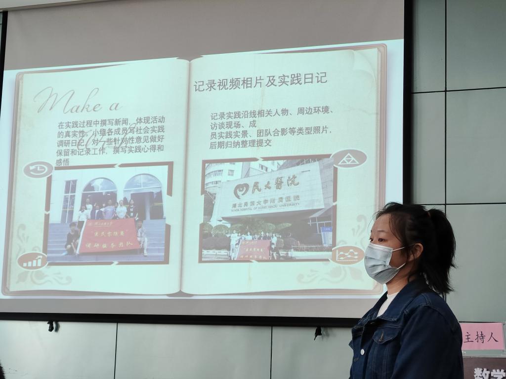 会议伊始,由主持人杨砚童介绍五个参与团队以及五位评委老师,并宣读本次的答辩规则。紧接着,五个团队按照抽签顺序依次上台进行答辩,他们分别从实践主题、实践内容、项目成果、活动总结等方面积极展示自身实践团队的主要特色和亮点,分享团队在实践过程中的收获与感悟