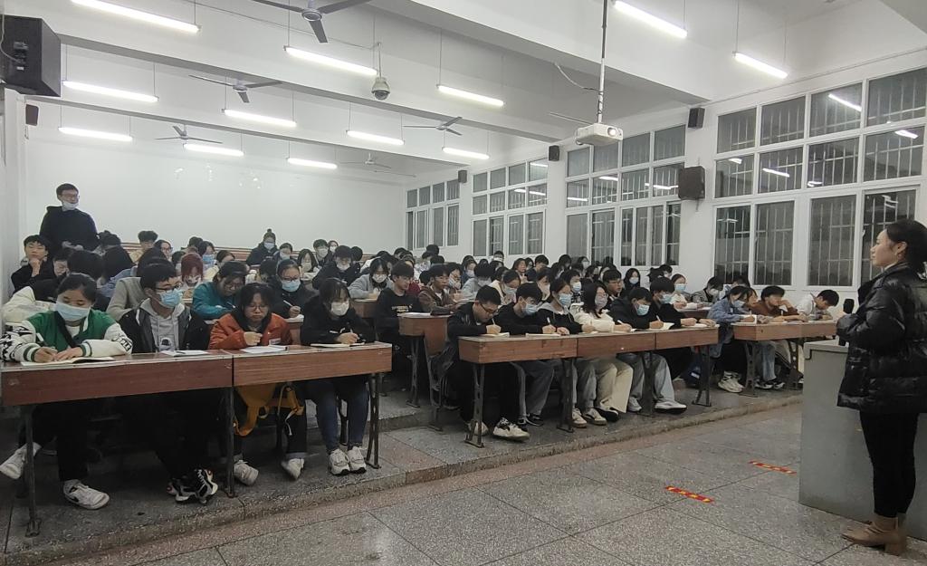 本网讯(记者 曾晓 唐金凤/文 曾晓/摄)11月28日晚,我院在3307教室开展第十六期学生干部综合素质培训第二次授课。本次授课由我院学生黄丽娜老师讲授,2022级全体学生干部到场聆听。