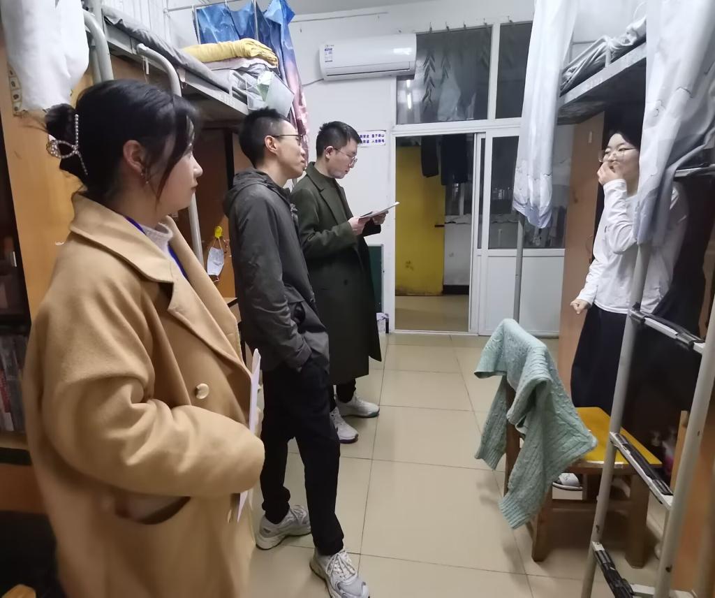 在查寝过程中,老师们对寝室各项安全隐患进行排查,并就思想状况、学习生活、安全卫生等方面与同学们进行细致地交流,对同学们在生活、学习中出现的困惑予以解答和帮助,鼓励同学们明确发展目标、做好学习规划。同时叮嘱同学们要提高安全意识、注意人身安全、遵守寝室管理规定,健康作息等。