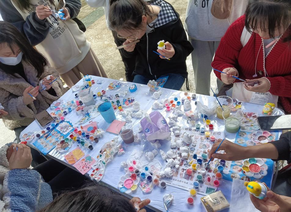 活动主要形式是DIY石膏娃娃,同时附有四个小游戏,分有单人战和组队pk模式。参与游戏,方可集得奖章。在完成挑战后,同学们可根据自己的集章数前去兑换奖品,活动奖品还分有“盲盒”和“明盒”,给大家不断的惊喜感。因此同学们参与度极高,现场氛围浓厚,效果良好。