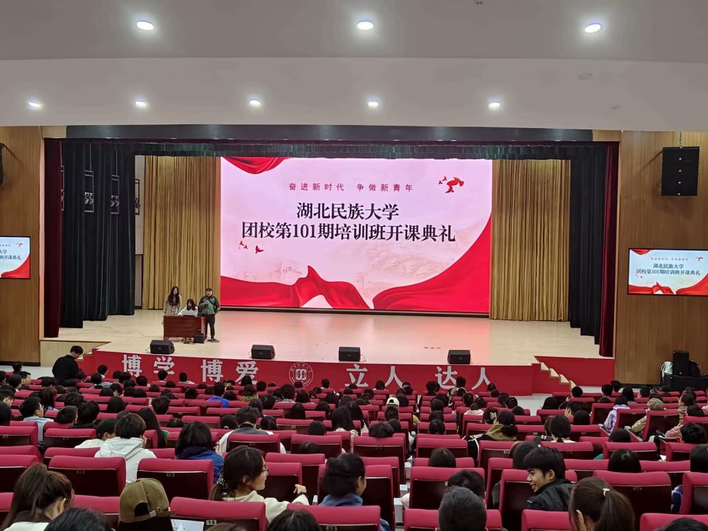 伊始,到场成员们一同重温入团誓词,随后主持人向团校成员们强调了团校的重要性,以及团课的纪律。团课是共青团组织对团员进行思想政治教育的主要形式,是提高共青团员思想理论水平和政治素养的有效途径之一,所以团课是团校中最为重要的一部分,是每位团员的必修课。紧接着,主持人对本次培训期间团校管理办法做出了详细讲解,从学员报名、课程开设、学习和纪律要求、学员考核四个方面强化学员的团校学习意识。本次开课典礼从嘹亮的团歌声中结束。