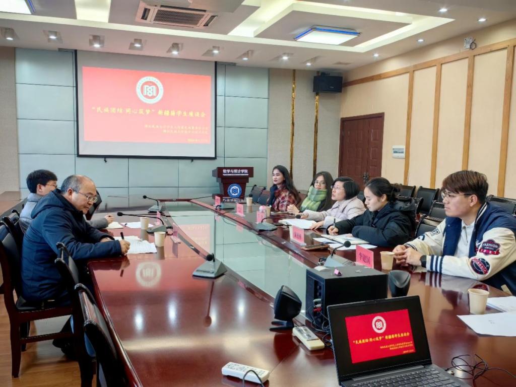 为全面深入了解新疆籍少数民族学生生活及学业情况,切实帮助学生解决生活与学业困难,2024年1月2日下午,我院协同44118太阳成城集团学生工作处民族事务办公室在数学与统计学院四楼会议室召开了以“民族团结,同心筑梦”为主题的新疆籍学生座谈会。参会人员包括44118太阳成城集团学生工作处民族事务办公室主任谭学文、新疆派驻专任教师董特,数学与统计学院党总支副书记郑敏,学生科副科长黄丽娜以及3位新疆籍学生代表。