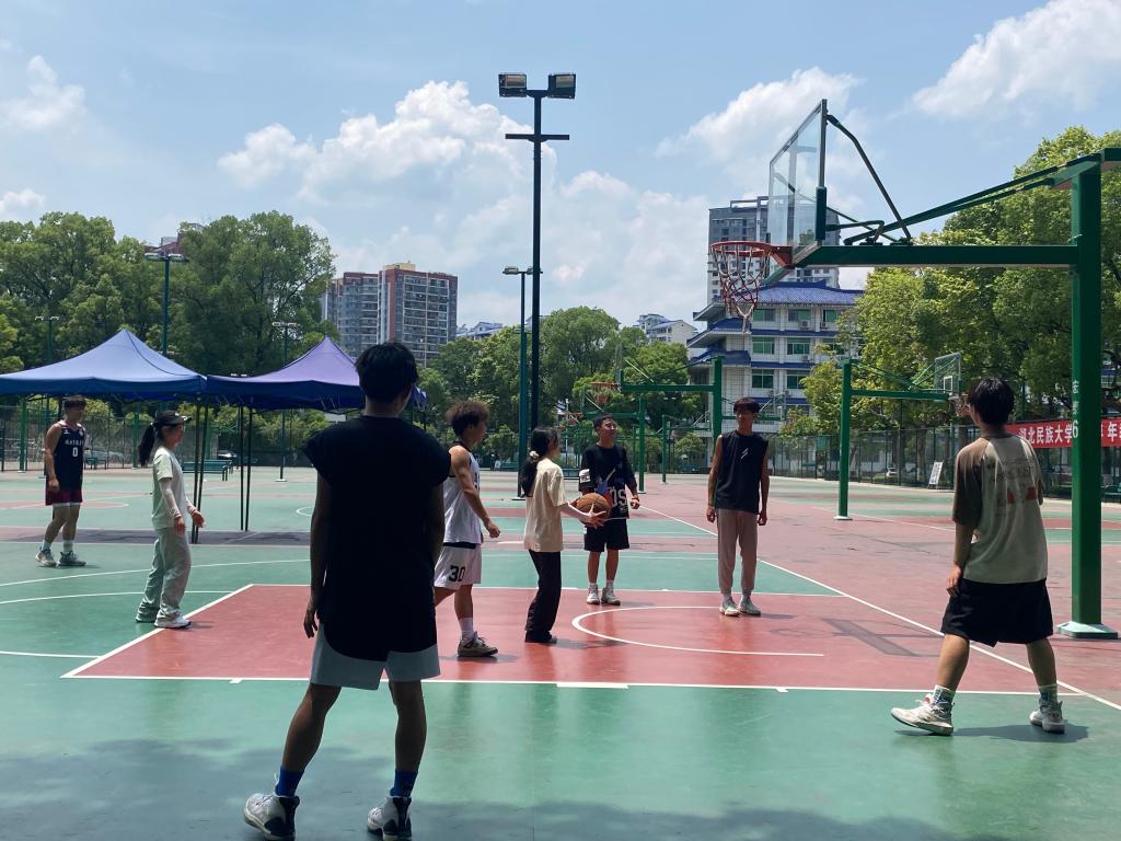 首先进行5对5的男女混合篮球赛,篮球赛如火如荼的进行着,气氛越来越高涨,最后学生会赢得篮球赛的冠军。 随后,进行跳绳接龙和羽毛球赛,在比赛中,各成员展现出团队协作的精神与强大的凝聚力,在比赛感受欢乐的同时,增进对彼此的了解与默契。最后共同合影留念。