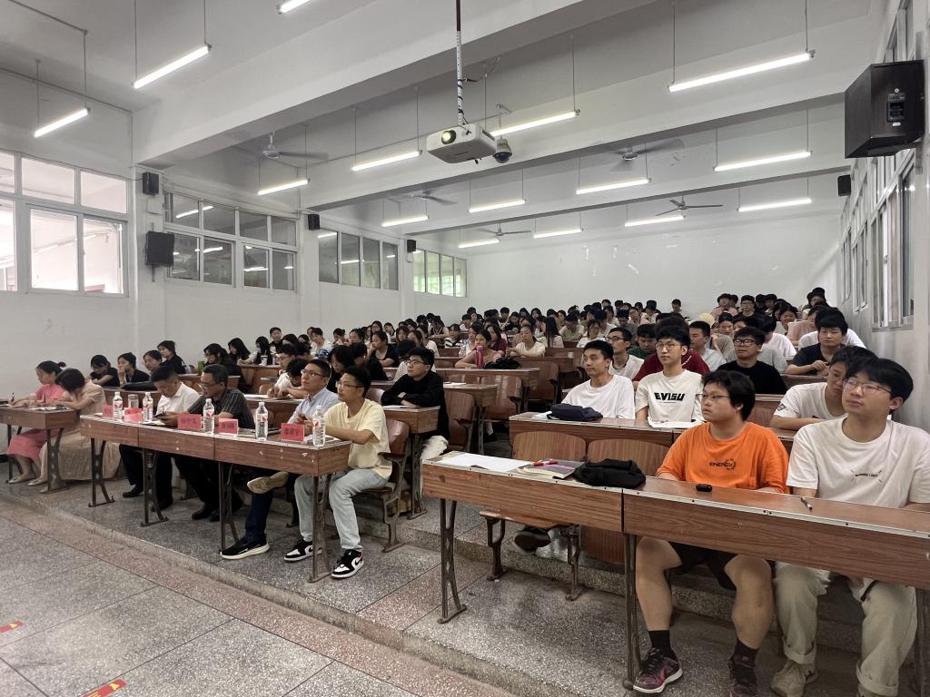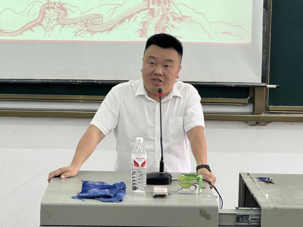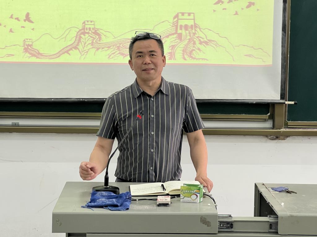 实习动员环节,向中义老师宣讲。他从师范技能大赛的成果和学校招聘的要求,引入对教学实习和论文与实习过程的融合两方面进行讲解。其中,针对教学实习,从知识储备、语言表达、教学技能、班主任工作、礼貌待人、服从安排六个维度系统且详细地讲授,并提到论文撰写早准备,早安排。最后他祝愿在坐各位同学实习工作顺利,满载而归。