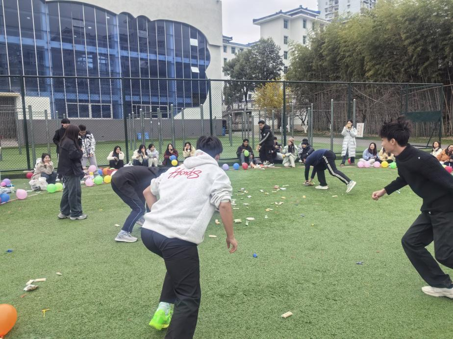 活动在轻松活泼的氛围中开始。主持人首先介绍了活动流程并完成点名。随后开展的互动环节包括“踩气球大作战”“反向指令”“五毛一块”等趣味游戏,同学们踊跃参与、配合默契,现场欢声笑语不断。游戏获胜者获得了专属印章作为奖励。